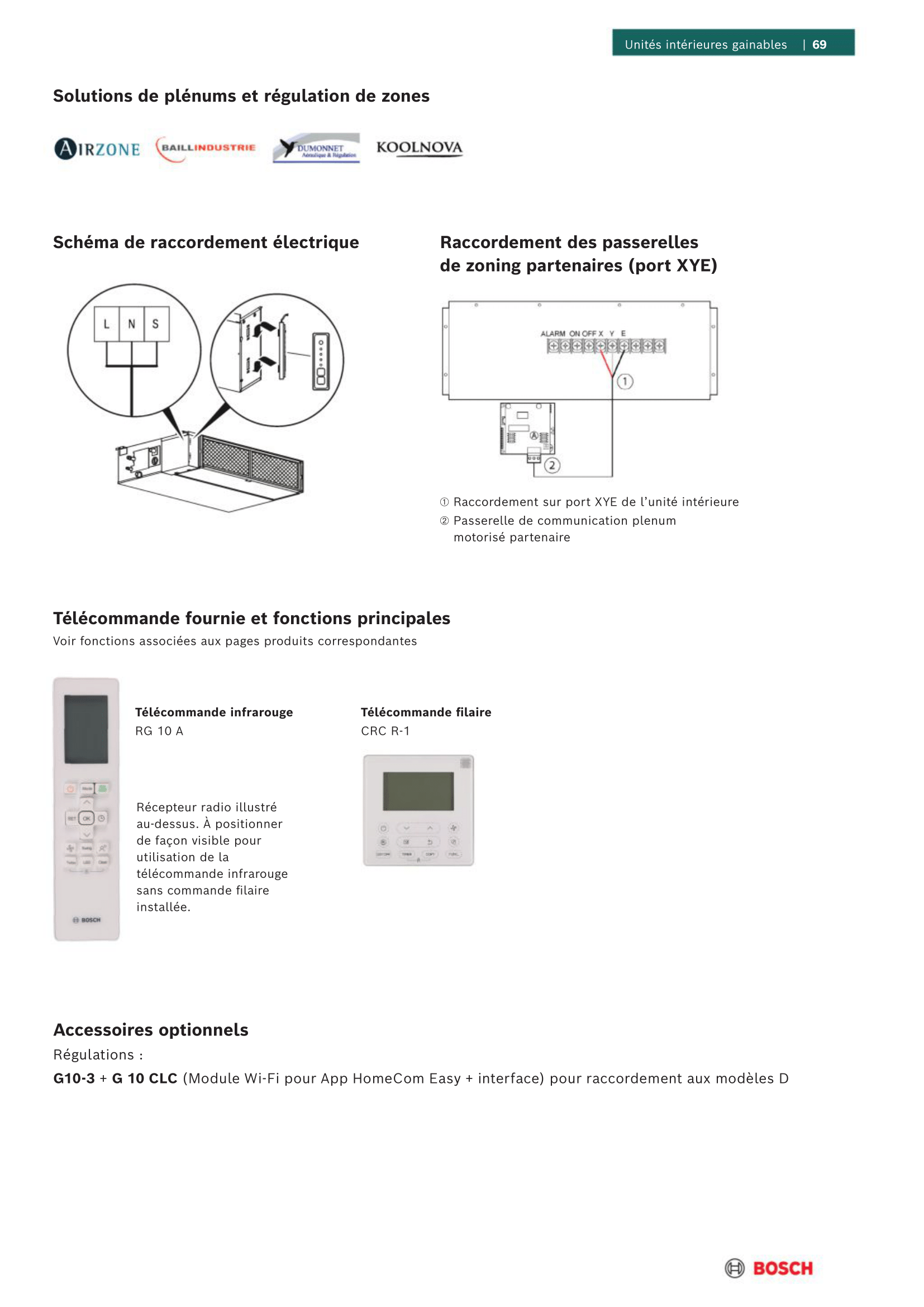 La connectivité est en option avec le module G10-3 qui permet un pilotage à distance via l'application Bosch HomeCom Easy.
